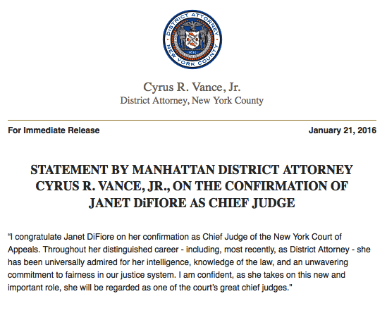 Statement From Senator John Bonacic On The Confirmation Of Janet Difiore As The Chief Judge Of The Court Of Appeals Ny State Senate
